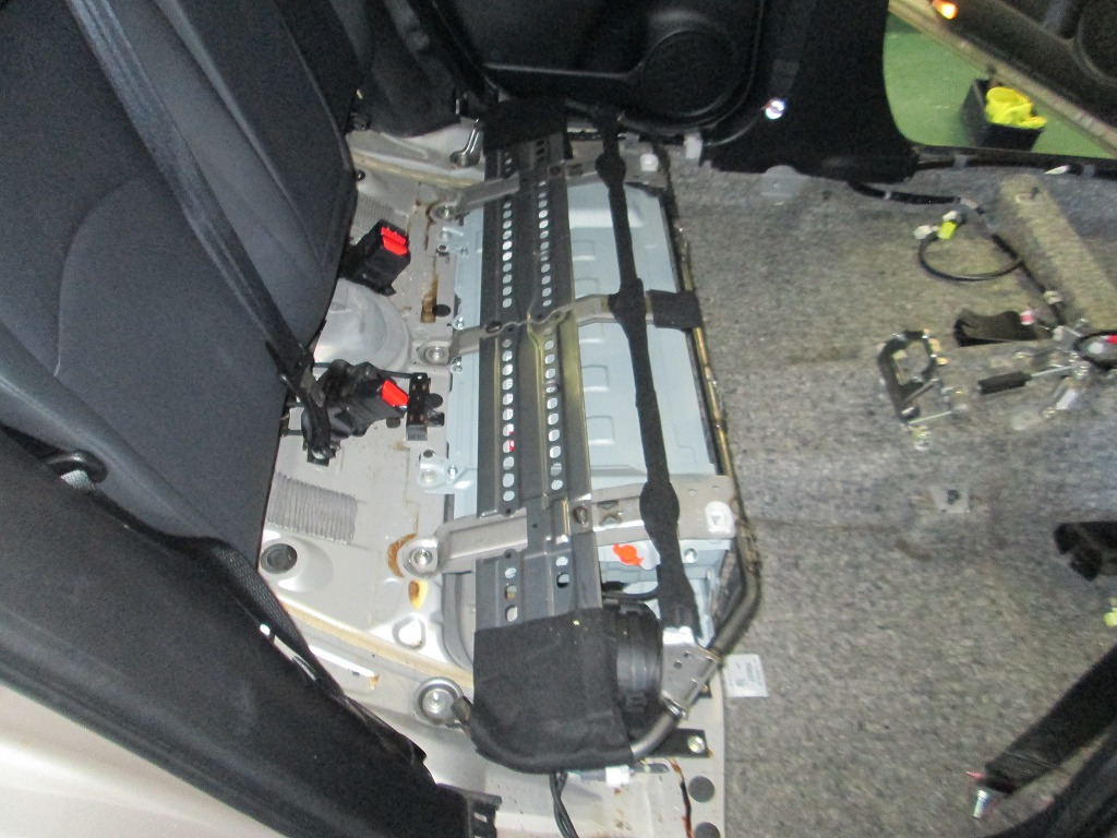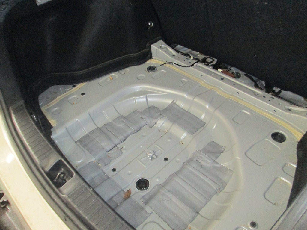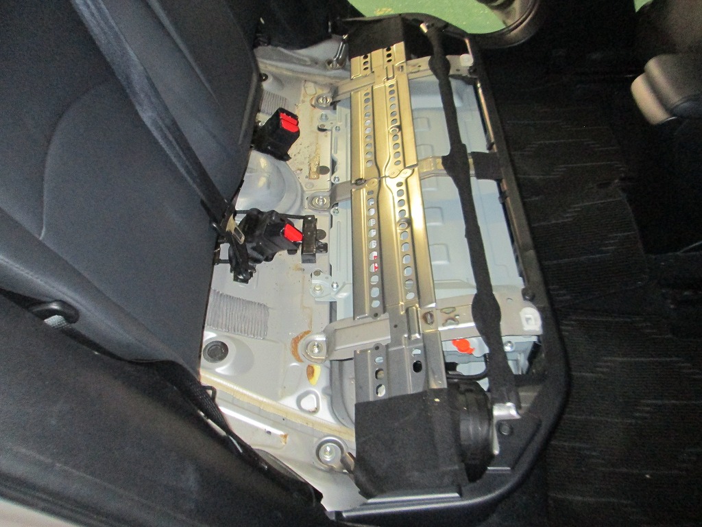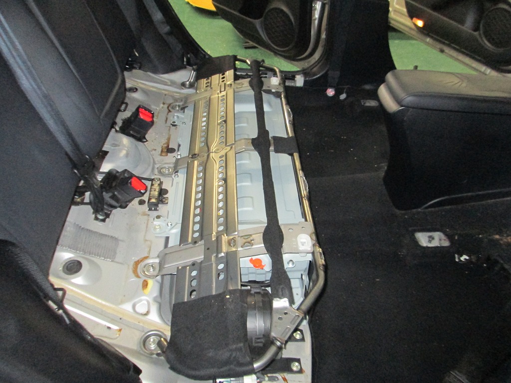 今回灯油を零したのはトランクですが、リアシートの下をくぐって・・・