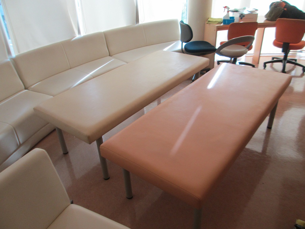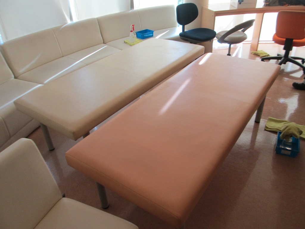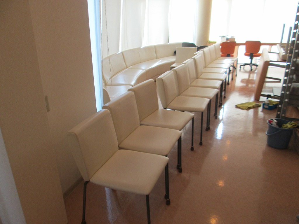 院内の改装に併せて、待合室のイスやソファーをクリーニングしたいというご依頼です。