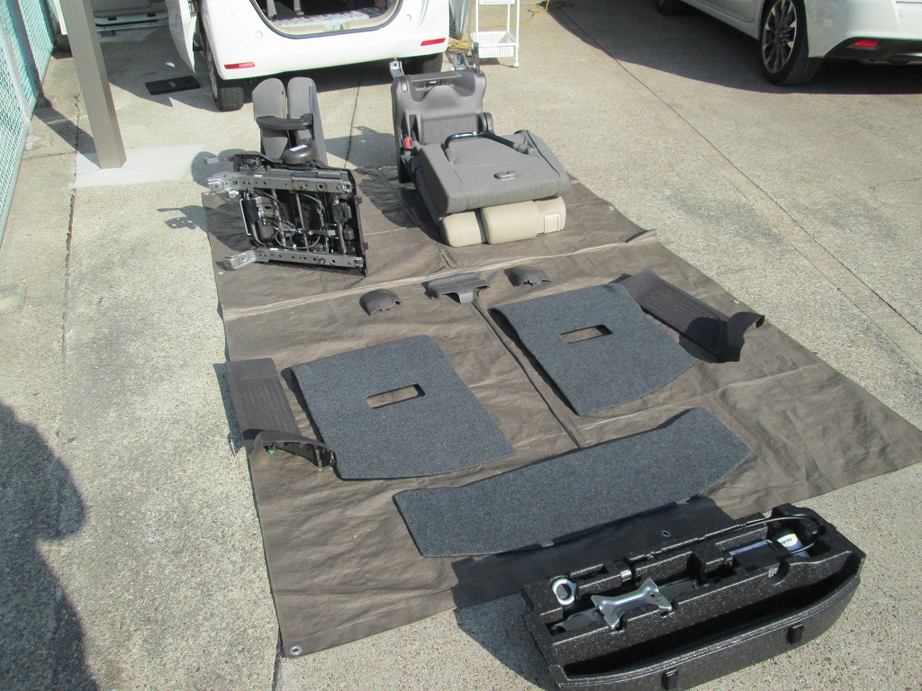 フロアーカーペットも臭いので、フロントシートも取り外して・・・